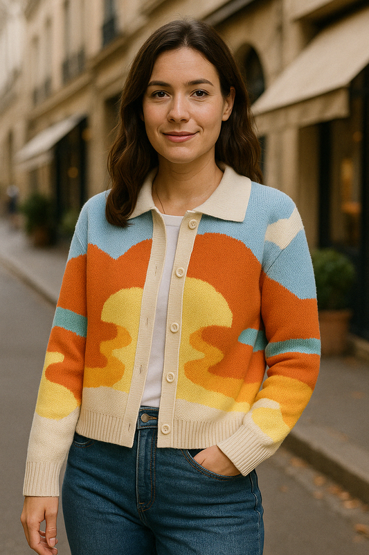 DIANA | Vrolijke cardigan met abstract patroon en retro uitstraling