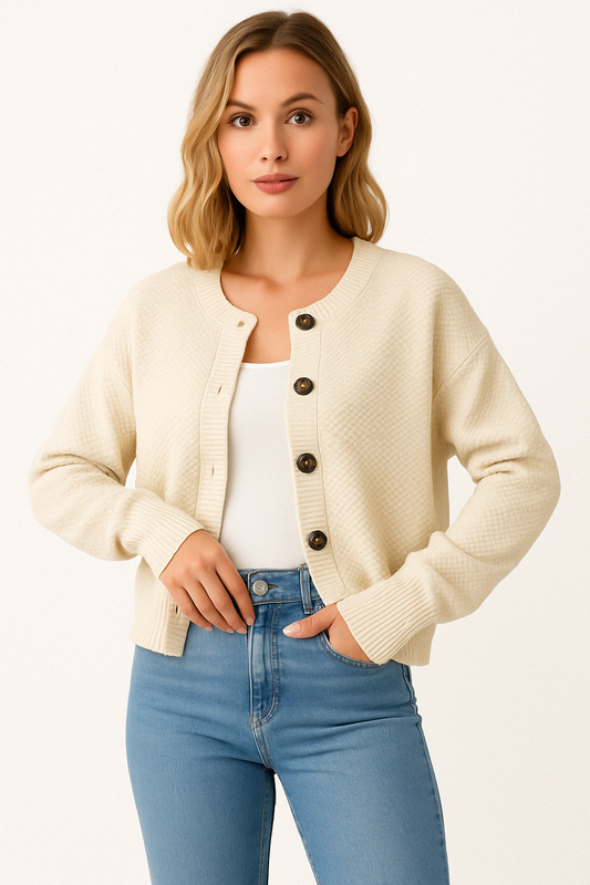 NIDA | Basic cardigan met grove knopen en structuurbreisel
