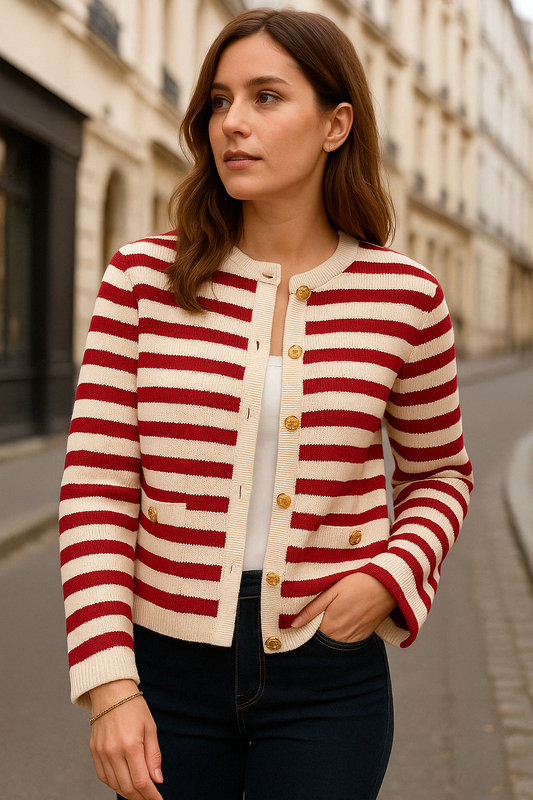 VIVIAN | Gestreepte cardigan met ronde hals en goudkleurige knopen